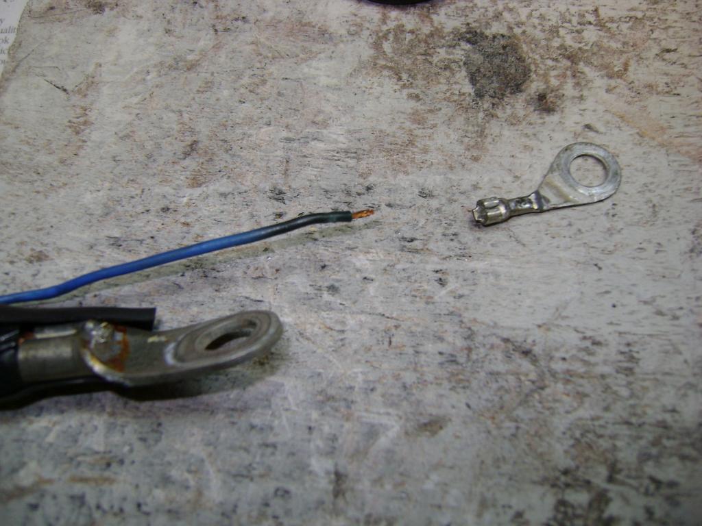 While installing the wiring on the alternator I discovered one of the connectors was broken. A little solder, shrink tube and the soldering iron took care of that.