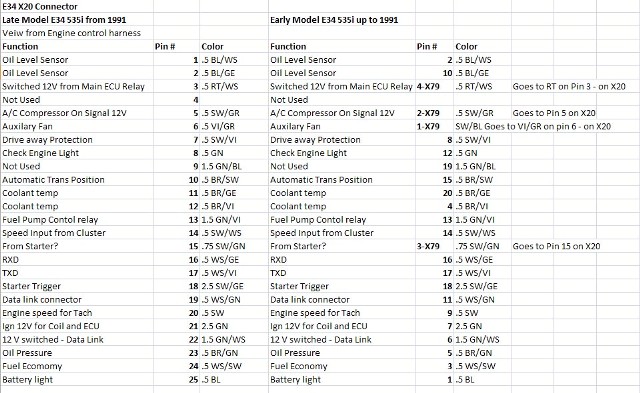 thanks for all the helpful information Jean will just use the plug off my m20 harness will start searching for my pinouts nd go from thereOption one is to make an adapter to go from your 25pin to 20pin (made a few of these for other guys) since the original harness I had was also a 25pin.