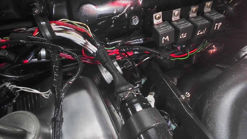 Although it looks like regular electrical tape it isn't. I learned that regular electrical tape gets really gummy and sticky when exposed to heat so I got some non-adhesive harness tape and just secured the ends with the sticky stuff. The non-adhesive stuff is pretty cheap and easy to undo if need be.