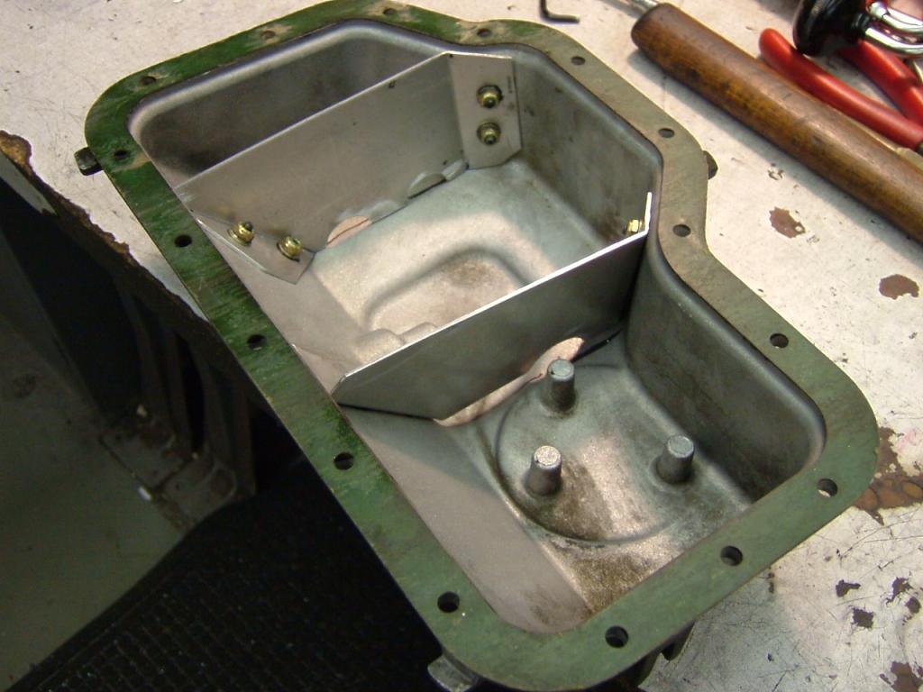 forget the bolts just tig it in there. What you want is hinged flaps that open and close to control the oil movement during hard cornering. So instead of the half moon baffles at the bottom hinge in a little rectangle door thing. gangster and cheap to make. You wanna have it setup so the baffles are around the pickup. It might be better to have one offset near the middle and make the hinge move 180 degrees since the pickup is not in the center of the panLast edited by Dj Buttchug; 03-08-2015, 11:24 AM.