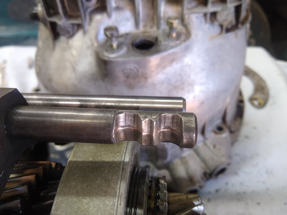 I need advice for the repair. The "W" end has damage as seen in the photos as well as the locking pin. Additionally, when removing the locking pin, it appears that the section of the case it slides in/out of was damaged on removal. Looking inside the case, it has two areas that look like bushings possibly, but I am not sure. Do I replace the shaft selector and locking pin? Or file and buff them for smooth operation? What about the area of the case where the locking pin slides, buff out the burrs?