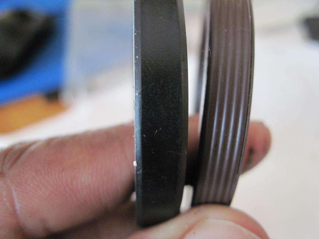 just thought I'd put this out there...couple of years ago I rebuilt the engine of my vert and during this rebuild I changed my clutch and surrounding parts including the input shaft seal. Make a long story short...11K miles later my tranny leaks oil. Pulled the tranny a few days ago and the leak is from around the input shaft seal. And this is why. The aftermarket input shaft seal has the same dimensions as the dealer part but is different. Around the inside and outside of the aftermarket seal there are no hash marks to help prevent oil leakage.