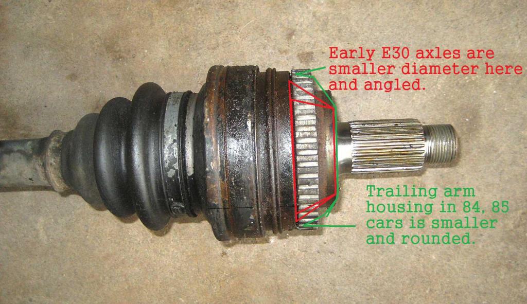 axle in question is off a '91 318i. My car is an '85. BUT I have 325i rear T/A's and hubs (from an ABS car).