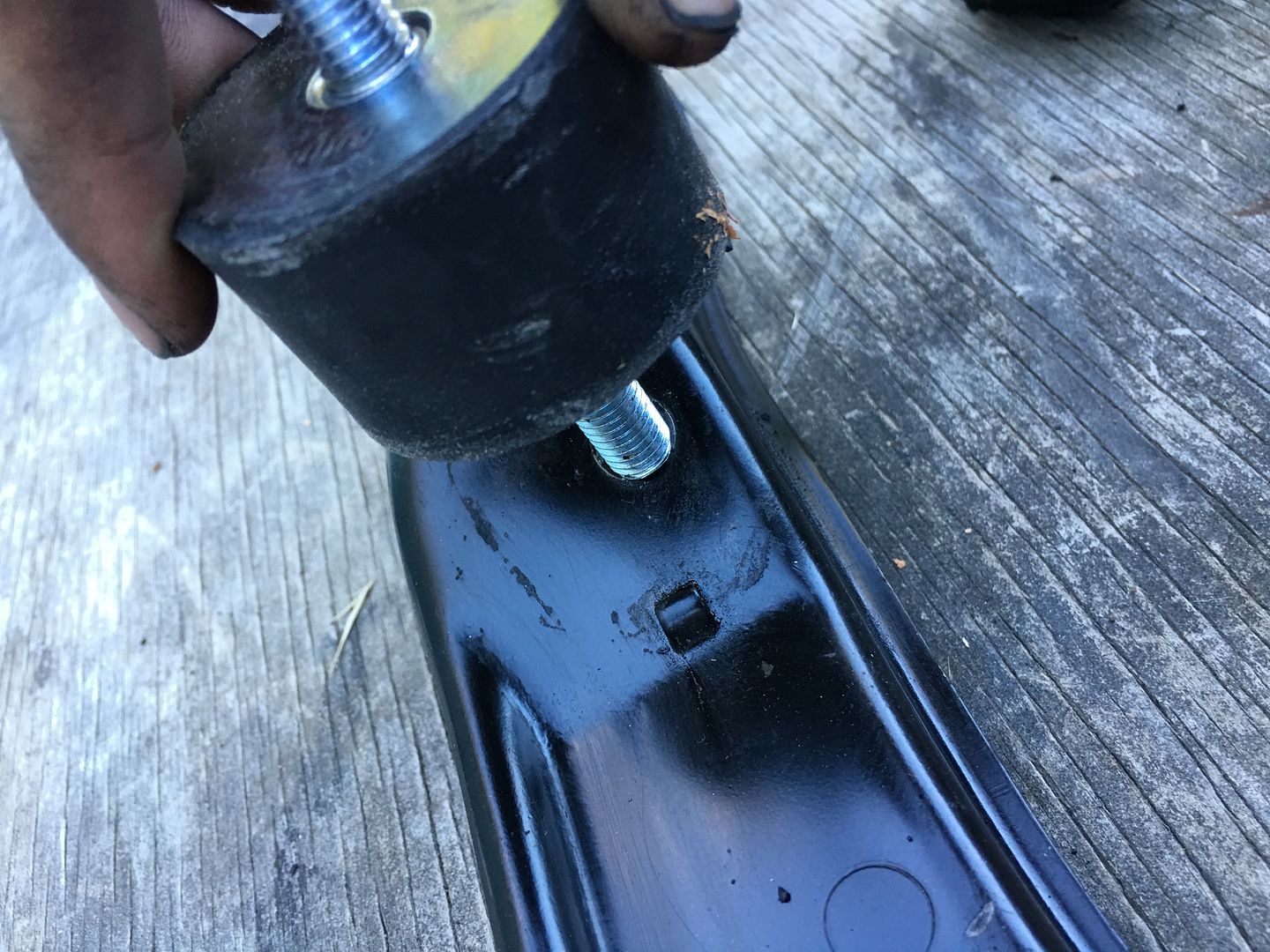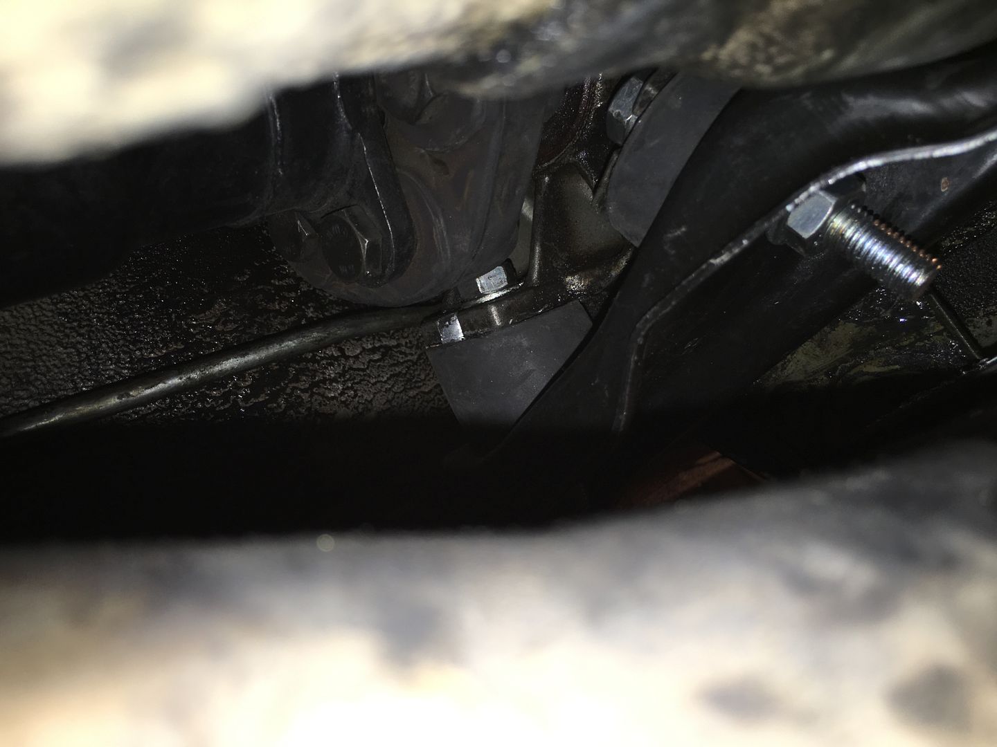 Get your nuts and washers and put them on the lower mount bolts and tighten them really good. 17mm