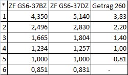 Here are the ratios compared to Getrag 260: