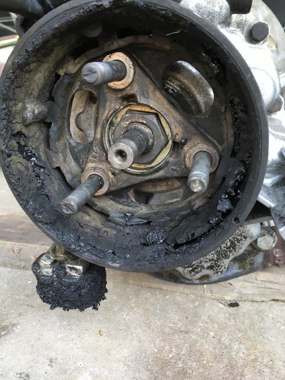 My guess is a left side fuel fire that dripped onto the ground underneath...? CPS's are melted off. Vent cap is partially melted. Exterior switch is part melted. Guibo shows signs of being hot and starting to get gooey, and the vibration dampener looks like it was melting together. Rear trans mount on one side is sticky and soft.