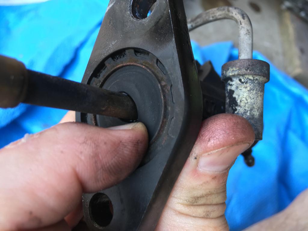 BUT...the slave cylinder rubber is intact and good. The fork spring is fine, and that's pretty thin wire. So it was exterior rubber and plastic. We'll change all seals, even though it wasn't leaking.