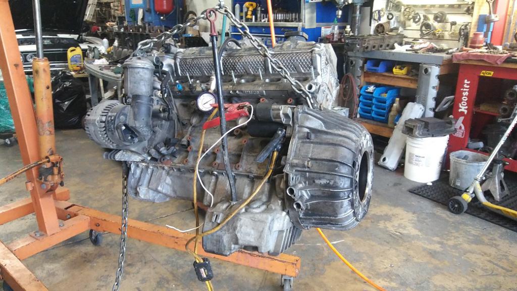Well, in the past I have always attached a transmission to bolt a starter on. Today I was testing an s50 that had been sitting for some time and it was leaking bad. Happen to look over and see a slush-box that a customer left since he didn't want it. Was in unknown condition (later pulled the clutches out anyways just to see, and it was in bad shape).
