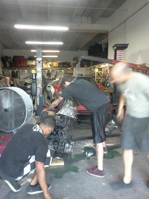 Blew it all apart real quick and went to slip the trans off. Got it off the dowels probably 1/2-3/4" and it just stopped. Absolutely refuses to come off. Even with the help of a couple 3' long pry bars and a couple people helping wiggle from side to side, it is totally jammed. I can spin the transmission almost 90 degrees clockwise/counter clockwise.