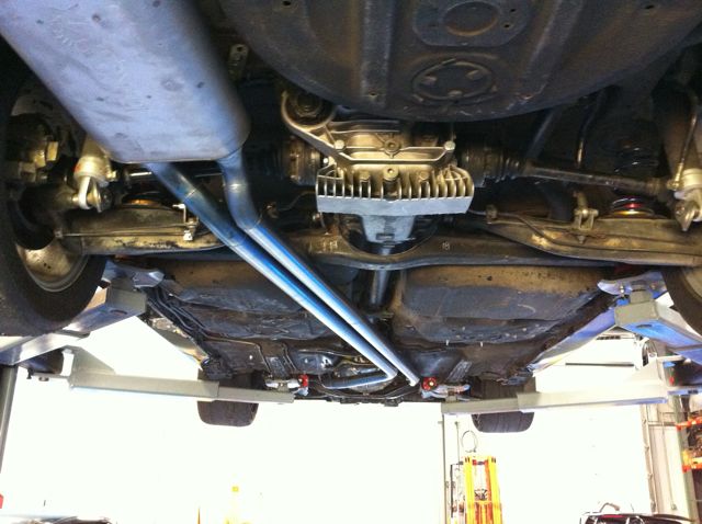 Looks nice Bruce...looks like the ground clearance is pretty good too, especially for a track car. Unfortunately, I have a bunch more stuff to fit up under there on mine, but I'm confident I can get it all to work and keep the ground clearance figure as large as possible. 2 cats, 1 x-pipe and 2 mufflers, all before the rear subframe... I have a plan and it should look pretty sweet and sound even better... Ever get the oil pressure bug worked out? Just curious...