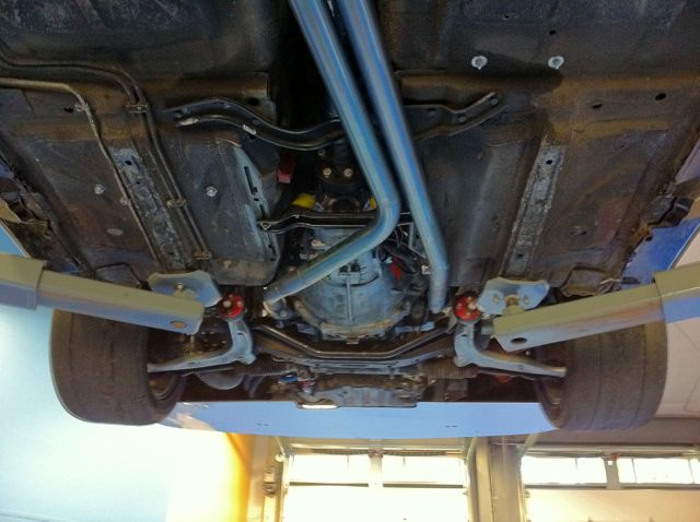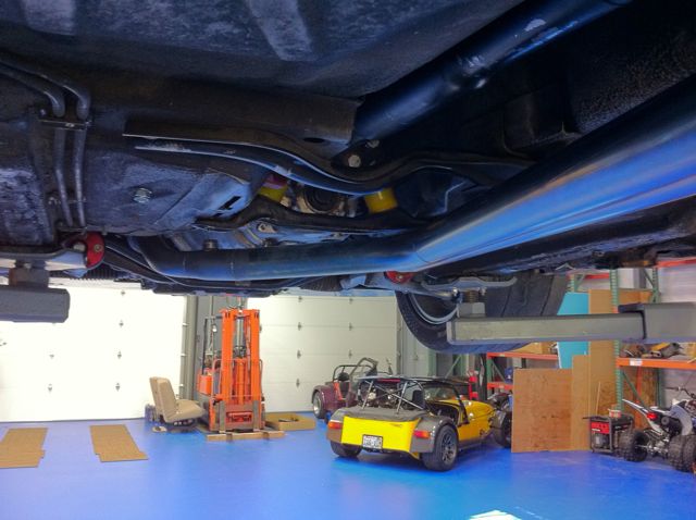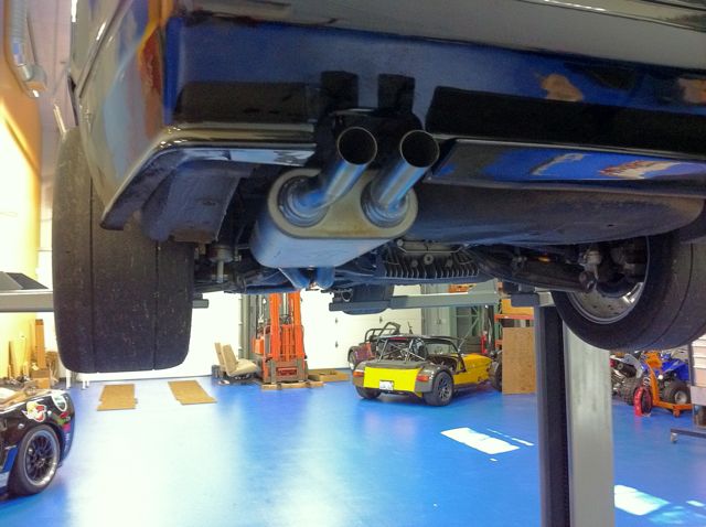 Looks nice Bruce...looks like the ground clearance is pretty good too, especially for a track car. Unfortunately, I have a bunch more stuff to fit up under there on mine, but I'm confident I can get it all to work and keep the ground clearance figure as large as possible. 2 cats, 1 x-pipe and 2 mufflers, all before the rear subframe... I have a plan and it should look pretty sweet and sound even better... Ever get the oil pressure bug worked out? Just curious...