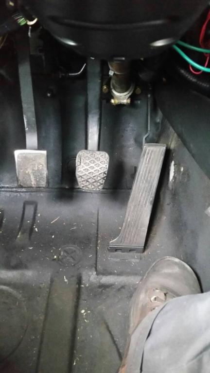 For those that wanted a picture of the pedal clearance with the wilwood clutch hydraulic kit. I did move the fuse box and headlight harness over an inch and bolted the pedal as far to the left as I could. Firewall was reinforced with a 1/8th inch plate, otherwise it would flex too much.Comment
