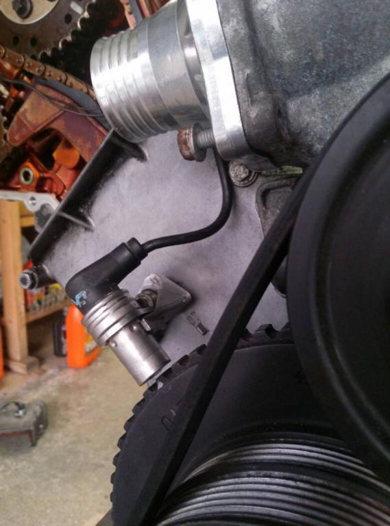 Then i decided to replace the rear water tube gaskets, and all 4 o-rings. Next was mounting the crank sensor. The 98 m62 is obd2 and I'm converting to obd1 in order to ease on build and run MS3. So i had to come up with a way to mount to the sensor. I think it turned out pretty good.