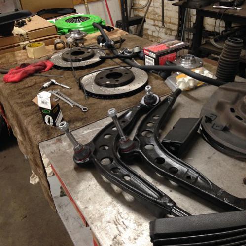 So while I'm at it with the suspension, placed a order with ECS Tuning and purchased the E30 Suspension Replacement kit. With less than a 100k miles on my E30, some of this stuff wasn't all that bad however, since I was so deep into suspension, I felt the kit added reliability to my new project.