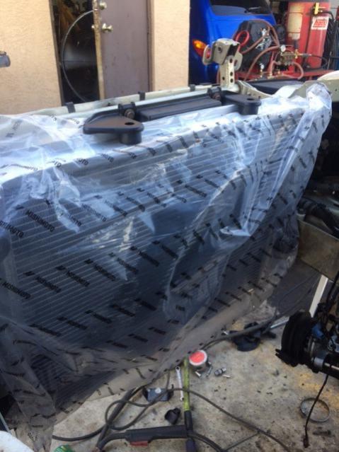 The brake booster delete bracket from Garagistic is in and its not coming out thankfully. A support bracket was also welded on to make sure it doesn't flex at all. Radiator is in with the puller fan.
