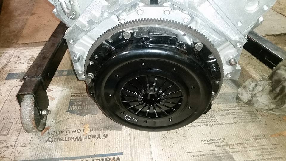 We checked the square of the motor in relation to the bay and it was dead nuts. Measured from front of rail to the plate and then diagonal from front of rail to opposite mount. The clearance between the oil pan and cross member couldn't get much better. Any farther forward or backward would mess with the shifter location.