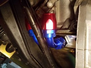 2. I needed to come out of the housing and turn 90 degrees. The fittings that worked had such a long bend radius they hung to low and contacted the sway bar.
