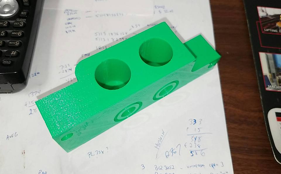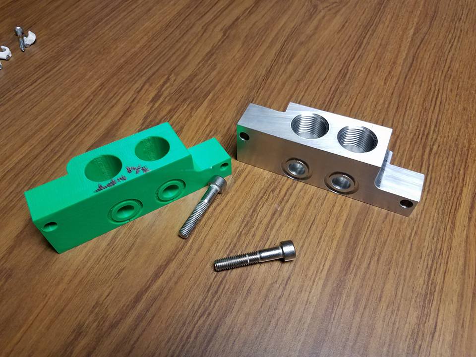 I started off with a design and a prototype. I test fit the prototype then sent the drawing out for machining. I turned the ports 90 degrees and changed the thread to 3/4 NPT. Now I can choose to hose barb the lines or have a hydraulic shop make the lines...either way is still way cheaper than AN.