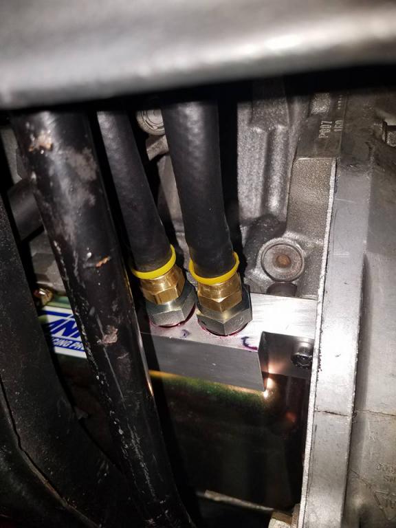 The lines and fittings from my local hydraulic shop was $30. The 3/4 fittings allowed for plenty of room to turn the fittings without them hitting each other. I used a little Loctite 545 thread sealer on each fitting for added measure.