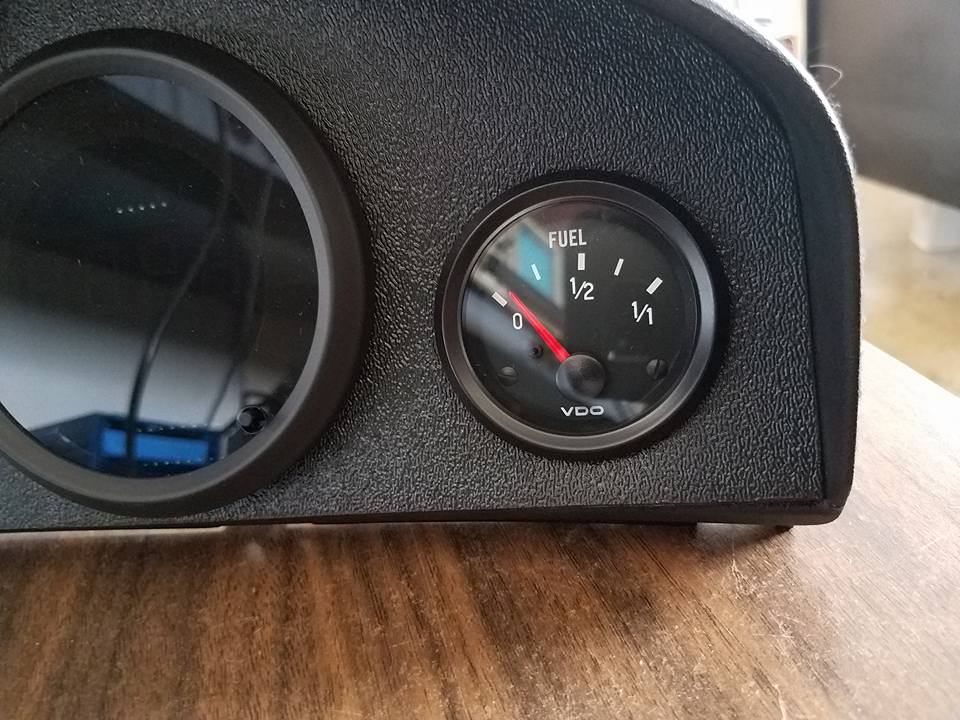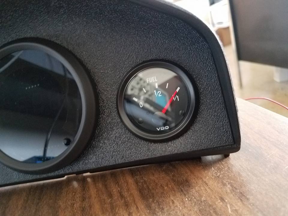 1. I purchased a VDO fuel gauge that was 10-65 ohm (full/empty) --> here I knew the gauge wouldn't read completely empty when the tank was empty so I did a little bench testing to see what it would look like.