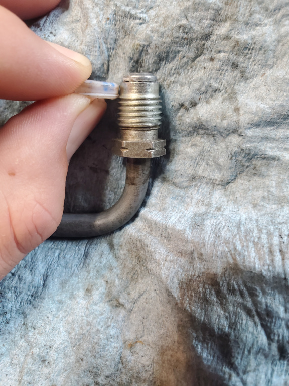 So I dug up these photos using the part number for the hard lines from real oem. The oem seals are whitish grey, but it looks like they are placed between the fitting and flare during install. More of a washer shape than I thought they were, since they flatten during install.