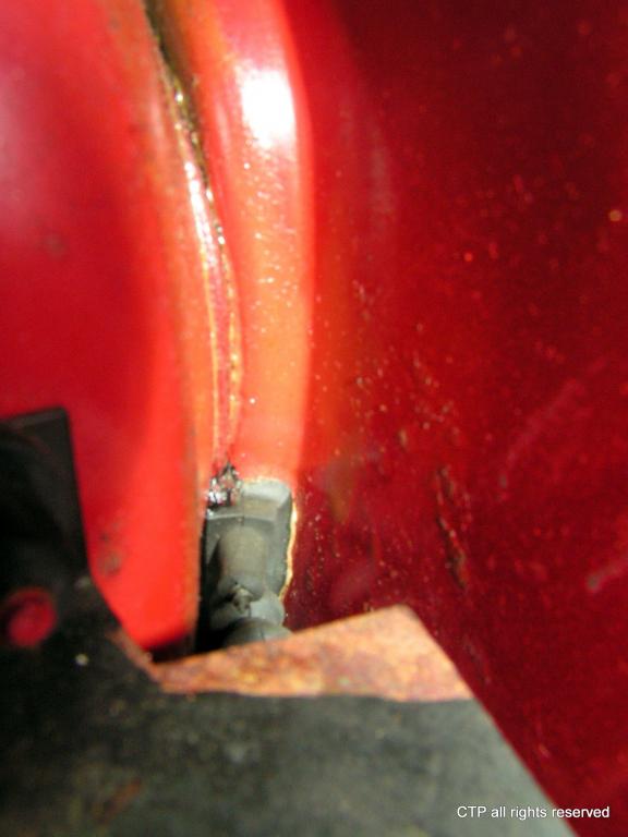 trust me it doesn't make any sense to me either! I feel like I'm getting punked here b/c i've pointed this hose directly to this tiny area...and its coming in from here for sure. The two screws grabbed really good...even had one hose out & my head in the car, and no water was coming thru the black rubber thing on the backside at all....unless it somehow peeled off the body (where I can't see). The water streams in somewhere where i can't see, since the wheel arch in the trunk blocks my vision.if in fact you got the screw to catch and hold I have a hard time believing the water is coming in from those holes.