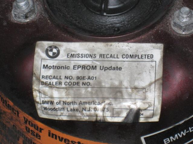 13 04 90 (3040)        Recall Campaign 90E-A01        Failure of some 86 and 87 325e vehicles to comply with CA law. Change EPROM    July 1990