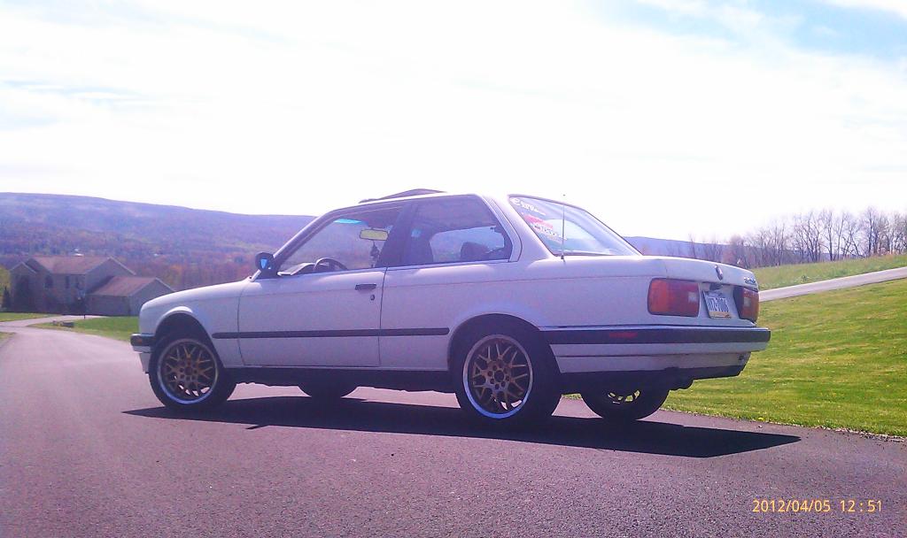 Stock Height. Not Lowered or anything. I can't be rubbing only because if you accelerate slightly and just tap the steering wheel to left it makes the clunking noise. Now remember the right side has the stock 14" Rim on and it turns 100%. I just did research and remembered the Wheels I bought came off of a Integra with a High Offset of 56.1. The Stock the 325i Wheel Offset is 4 lug 3.97 inch or 100mm Medium Offset. The Rims are the problem?Comment
