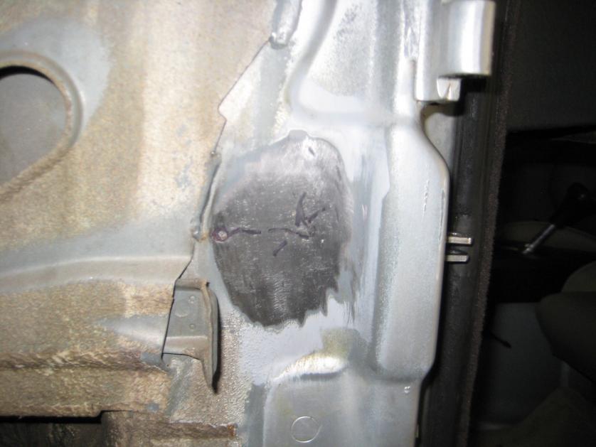 In the attached picture I highlighted the cracks with sharpie and you can see the outline of the spot welds. I hope this helps.