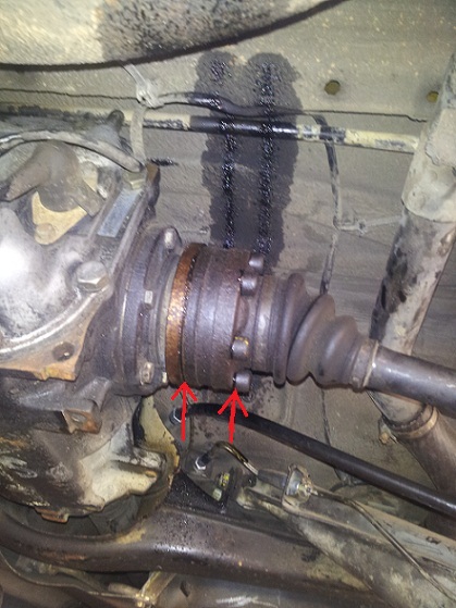 There are two lines that are being sprayed. The leaks appear to be coming from where the red arrows are marked. The bolts and where the axle mates with the diff.