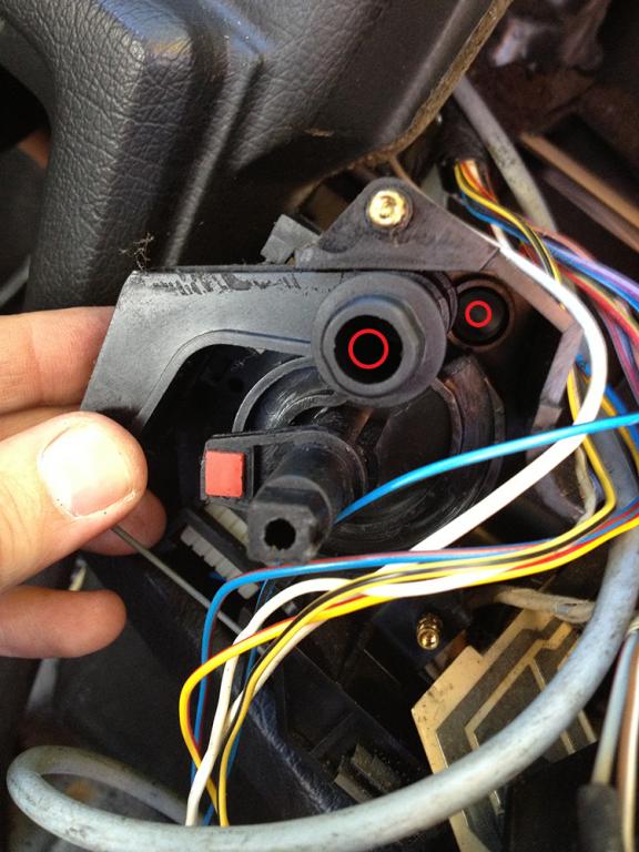 My temp knob can only turn from cold to the middle (1/2 the range). It seems to get stuck as to turn it clockwise. I took the front dash apart to take a look and indeed there are some broken parts, cracks, and missing screws. One part in particular is confusing me. I've attached the photo. Are the two red circles I've drawn supposed to be concentric?