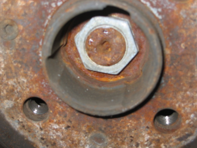 Anyway, maybe I just got lucky with mine, but my fronts came off with a two foot breaker bar and the rears came off with my 1/2" gun. The drivers' side didn't get the surrounding clip/retainer removed cuz I couldn't see it through all the rust. Passenger side got removed though, but it wasn't any easier to remove.