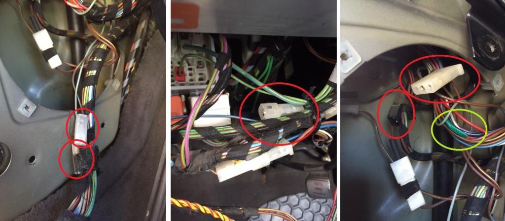 I have tried inspecting and cleaning the CLCU unit, the relay, the door hinge harness (but did not pull each pin individually), and I have jumped the red/black wires to bypass the door loop, (circled in green is the wire I jumped to the double red/black connector on the CL relay, mounted next to CLCU). I swapped the fuse in the engine bay also, testing all doors for CL functionality after each step. I did plug in the little alarm speaker around the same at the kick panel for the first time since I've owned it, so the car beeps when doors open, etc. I tried unplugging it also just to see if I shorted something, but nothing.
