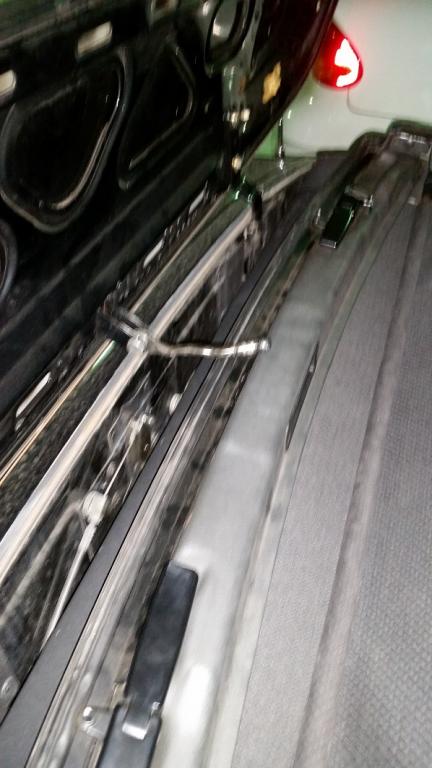 Here are some pics as far as it goes and of what the trunk looks like. Maybe they didn't convert it correctly? I've tried opening it to the point where it's almost all the way down, then using the switch on the dash if it was a semi auto, but that didn't seem to do anything, even when holding it for 30 seconds. I didn't hear any motors moving. I've also lifted that little 6" bar up and out of the way. The top lays over the back seat in the headrest area, is that normal?
