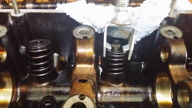 Since I was only doing one head, I thought I could get by with the Harbor Freight "universal valve spring compressor". But (surprise, surprise), it didn't work well. Normally I would spring (pun intended) for a proper tool, but thought "this is not that complicated, the tolerances are not tight, and the forces are not large, so there must be a better way".