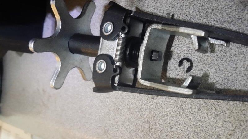The problem with the HB tool is that it only grabs (and frequently falls off) the larger outside spring, but doesn't compress the inner spring. But the adapter on the tool is useful. So here's what I did...