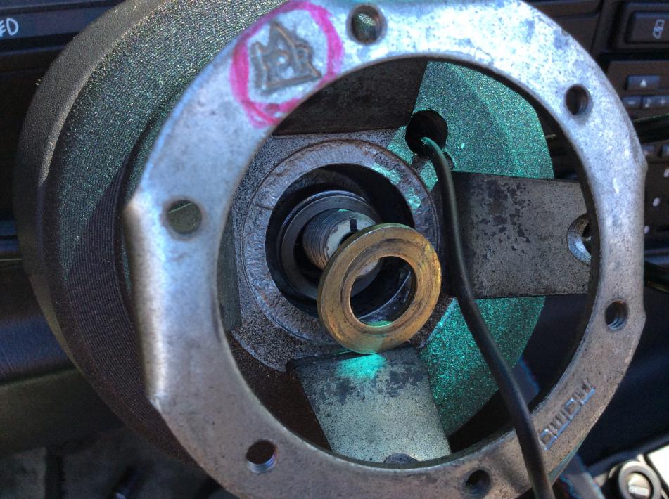also ... once the install is complete, the steering wheel sits a little closer to the turn signal/wiper/cruise stalks ... it's about a half-inch closer ... basically the thickness of the spacer (part number 32 31 1 120 260) that you used under the center nut & washer ... i personally don't find the clearance to be an issue with me ... some try to bend the stalks without breaking them ... others snag stalks from a non-airbag e30 & swap them out ... to each their own ...