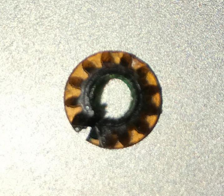 While I had all this out I am also going to fix the stripped odometer gear that caused everything to stop rolling. But for the life of me I cannot figure out what replacement gear I need to buy. The tiny main drive gear is pretty badly stripped and cracked so I can't be confident the number of gears I count, but I think there are 12. But on the smaller inner gears on the larger gears I count 14. Should these match or does 12 and 14 sound right in other experience? I attached pictures of the gears below.