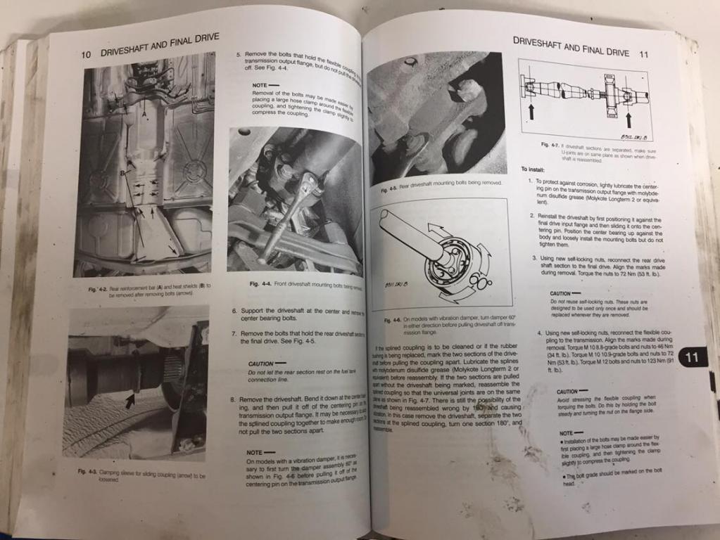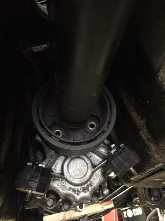 What job are you doing? If it's just replacing the guibo, providing you can push the front half of the drive shaft back far enough on the splines you might get away with not unbolding the diff. If you're doing the centre bearing, or replacing the transmission, then take the whole drive shaft out - trying to do things under the car will just be a PITA with the shaft in there.