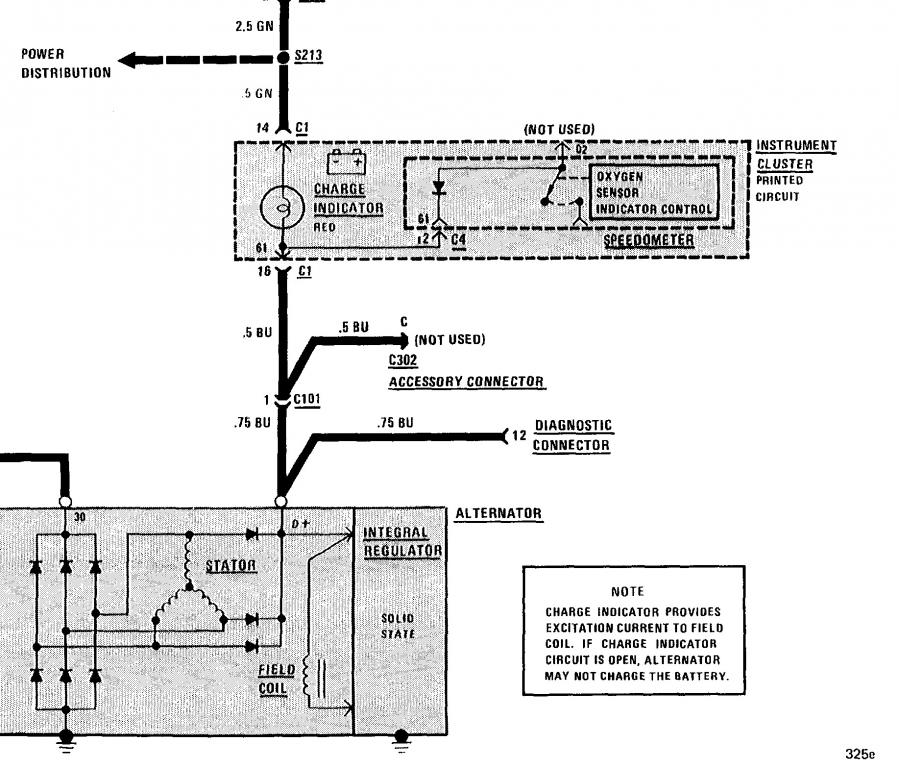 In later clusters there is a resistor in parallel with the charge light bulb in the cluster. Check that C1 14 and C1 16 have a connection'84 318i M10B18 147- Safari Beige