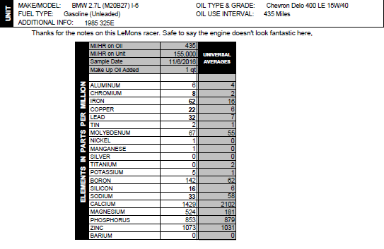 I had a couple of kits from before I had my E30, and used them - it was the Canadian equivalent of Blackstone. These were results I got on test back in 2013. I'm hoping to do one after my next change. Just haven't had the extra money to be consistent with them.