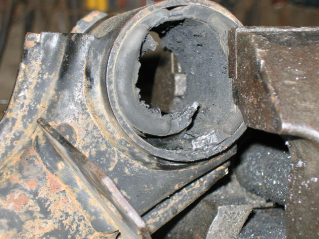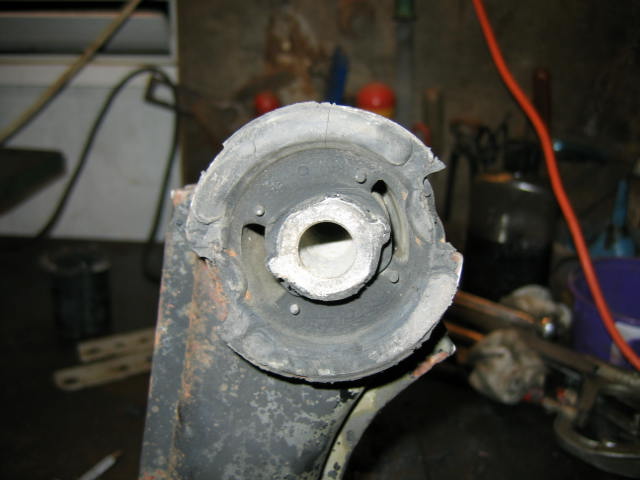 1. Take a drill and attack the rubber parts of the bushing: