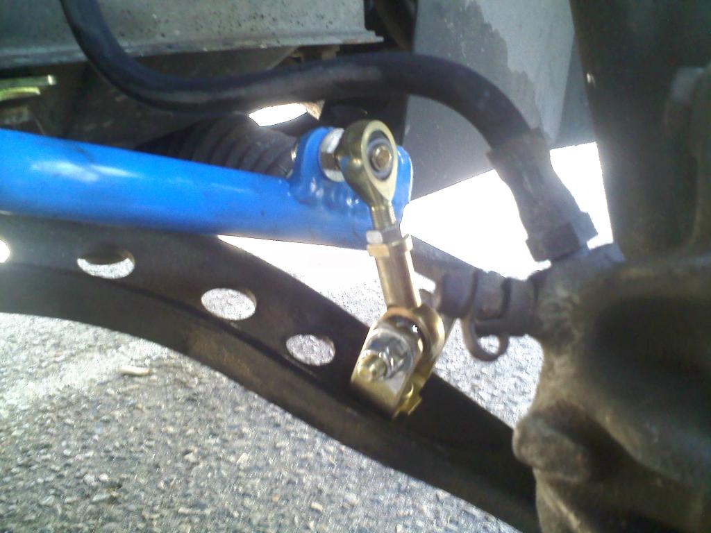 I am curious if anyone with IE has this problem. It seems like the provided ball joints are undersized for the mounting holes. The bolt that comes off the ball joint is smaller than the hole it goes through. It makes a lot of racket on uneven pavement.