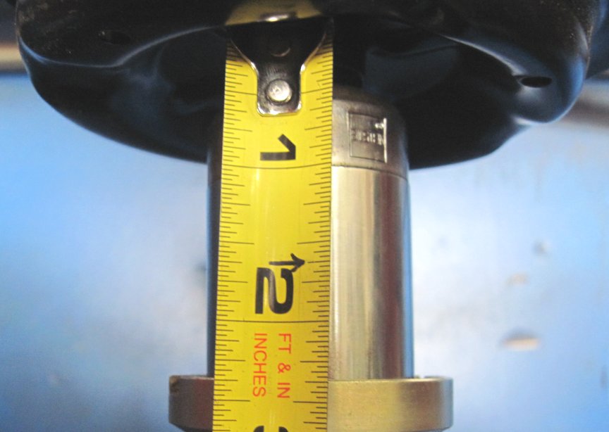 Now, go measure your car exactly the same way. Anything you have OVER 2 3/8 inches is how much suspension travel you have left before your Bilstein Sport is hitting its bumpstop. Let's just say you measure your strut (just like I have shown in the picture) and you show a number of 3 1/4. This means you have 7/8 of an inch of strut travel, and every time you hit a bump higher than 7/8, or lean into a turn more than 7/8, you will be on your bumpstop. (3 1/4 minus 2 3/8 equals 7/8 inch)