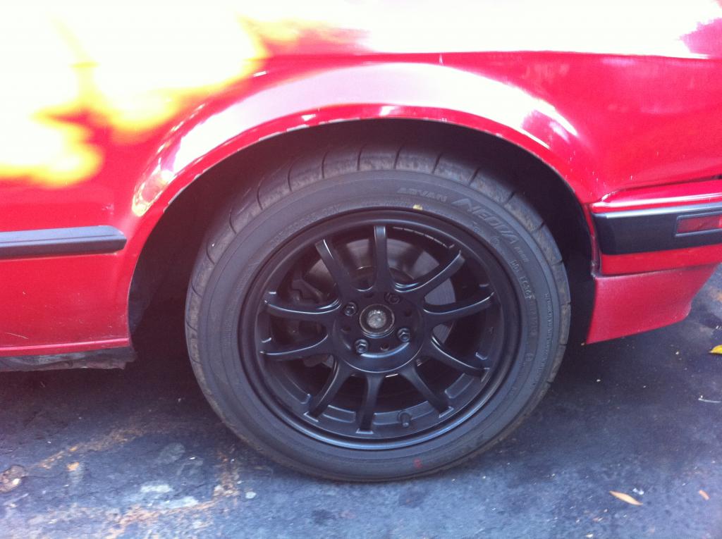 The car has IE camber plates on them, and they look pretty beefy. My question is that it doesn't seem very low in the front (like at all). I had a previous e30 with IE3 springs and GC spec e30 plates, and the front seemed significantly lower. Do the GC's not go very low, or are the IE camber plates just too thick?
