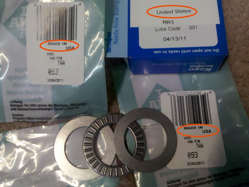 The correct races are very hard alloy steel, are hard chromed and polished. They cost MORE than the needles. Substituting washers instead of races to save money just tears up the needles because they skid rather than roll. This is apparent in your pic by looking closely at the needles.