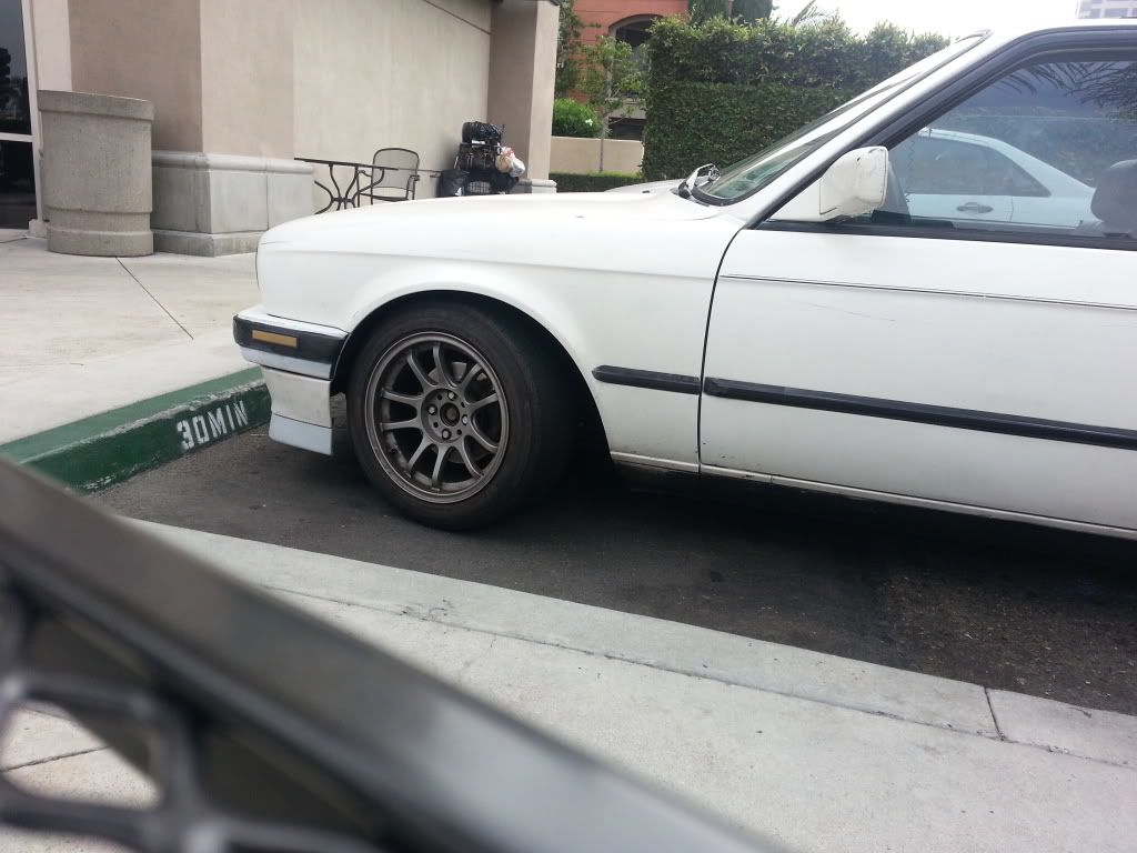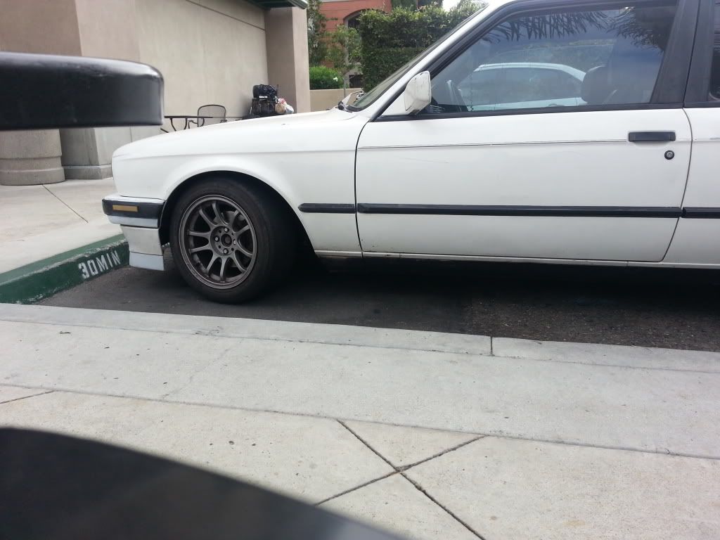 Installed my springs on my 91 318is the other day and the rear looks decent, but the front is waay too high. I hate it. I have the e90 drop hats also, but it looks terrible with the reverse rack.
