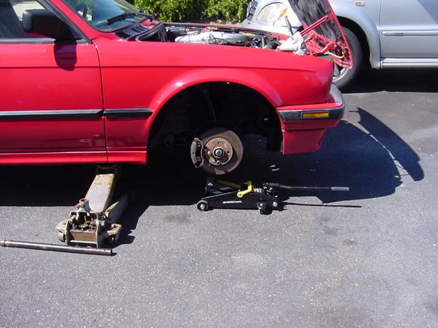 {dont foget to tie up the strut so its not pulling the brake line and brake lining sensor}