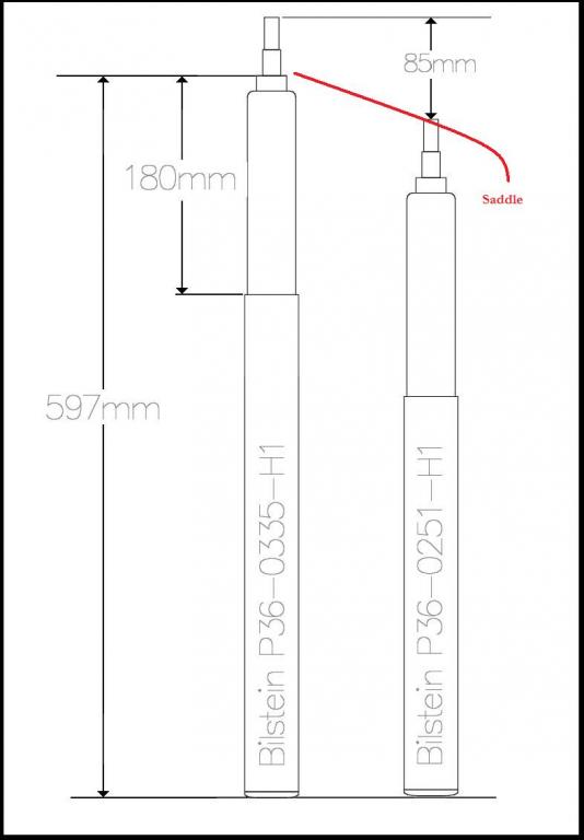 My measurements: yellow shock body = 16.5", from shock bottom to tip: full extension = 24", compressed 20.75"