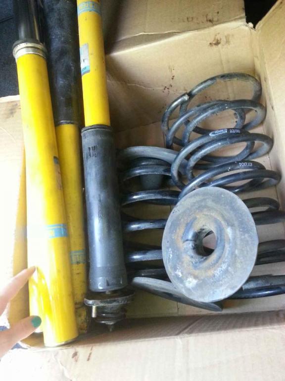 I just bought a used bilstein shock and eibach spring set off of an e30 m3. The springs are 2017.101 and 2017.002. Front specs 1.3'' drop on m3, rear .8'' on m3. Will the drop on my e30 325e be the same drop it did on the e30 m3 or will it lower my car more? Anyone have these on a non m? Pics would be great. If these are going to drop my car about 2'' then im open to trade them for a standard eibach or h&r spring set.